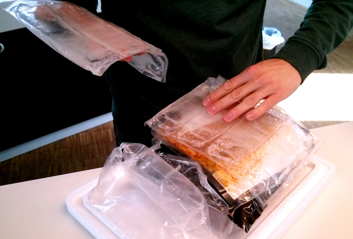 - Im Inneren der Pakete: Perfekt gekühltes Fleisch und eiskaltes Bier.