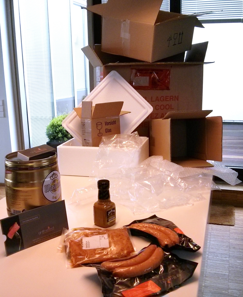 Die kreativen Inhalte der Boxen, die ab 15,90€ erhältlich sind, eignen sich besonders gut als Geschenke für eine Sommerparty bei Freunden. Besonders die Sets mit verschiedenen Grillsaucen werden sicher für Begeisterung sorgen. Schade findet besonders unser vegetarisch lebender Kollege, dass es kein Set mit Fleischprodukten und einer zusätzlichen Alternative für Vegetarier gibt.